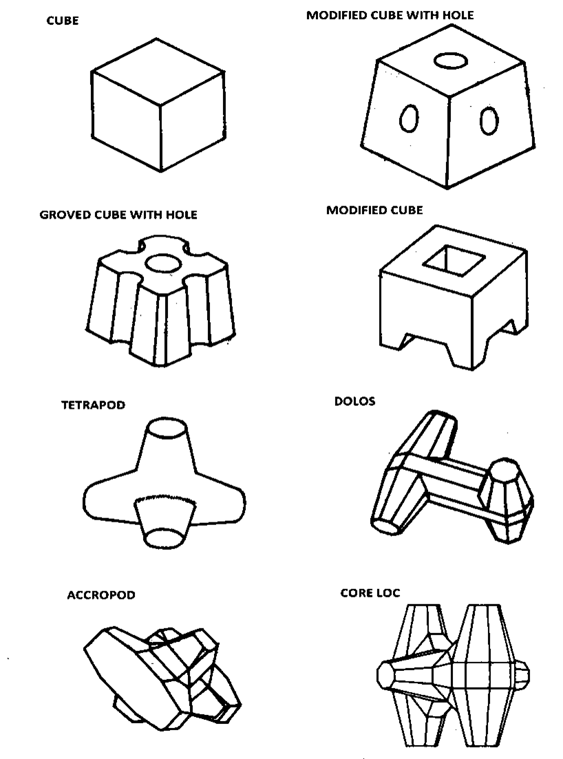 - شرایط محیطی: ارتفاع امواج، شدت جریان آب، نوع خاک بستر و عمق آب از جمله عواملی هستند که در انتخاب نوع قالب موج شکن موثر هستند.